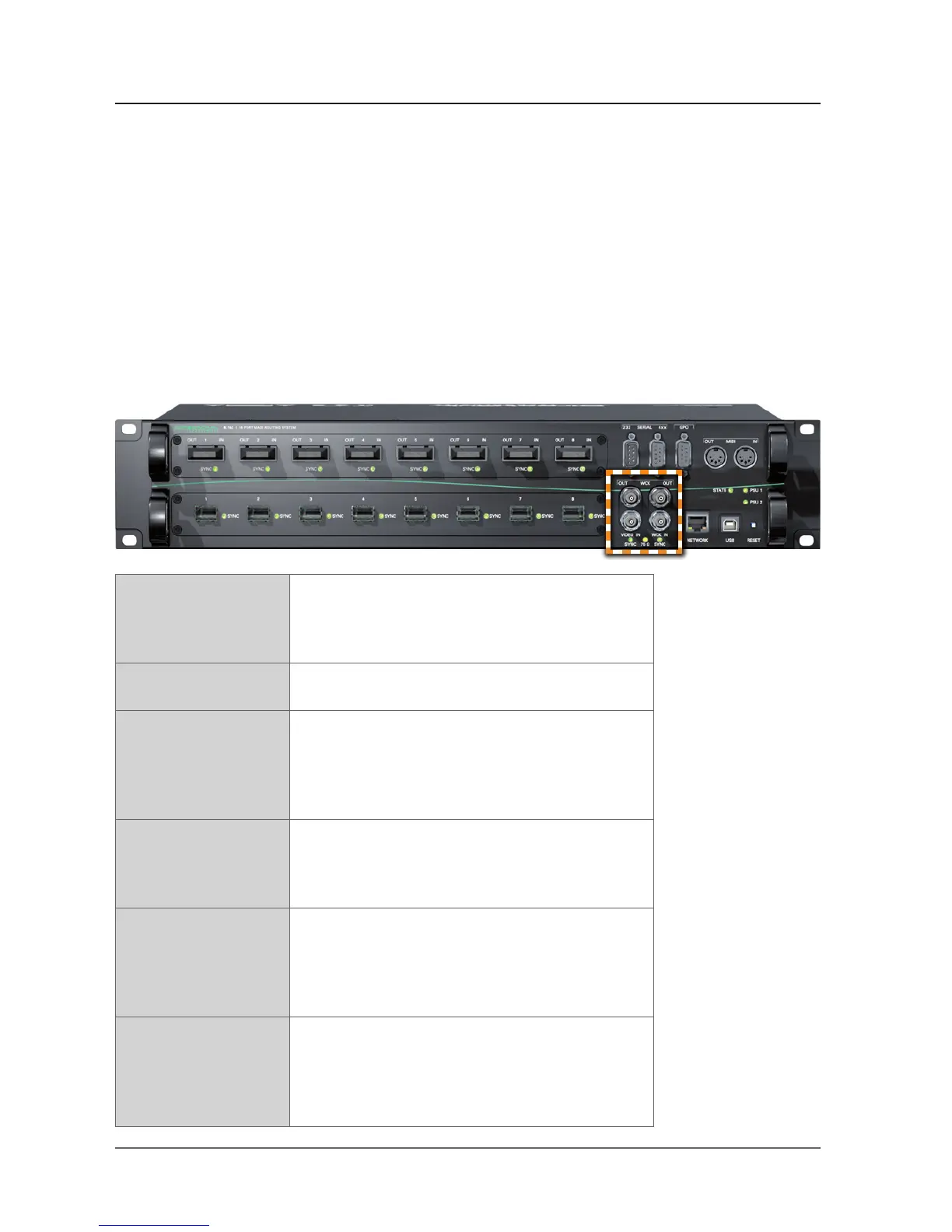 SYNC (WCK IN) LED (green): indicates the sync status of the