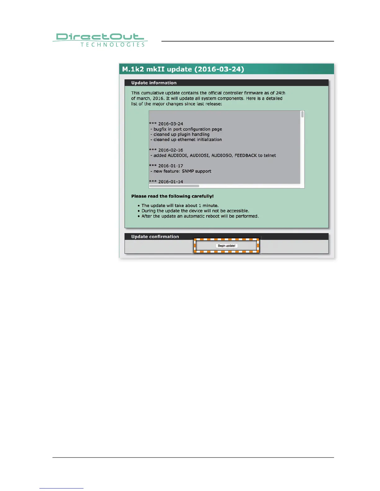 5. Select ‘Begin update’. The fi le will be uploaded, checked and detailed update