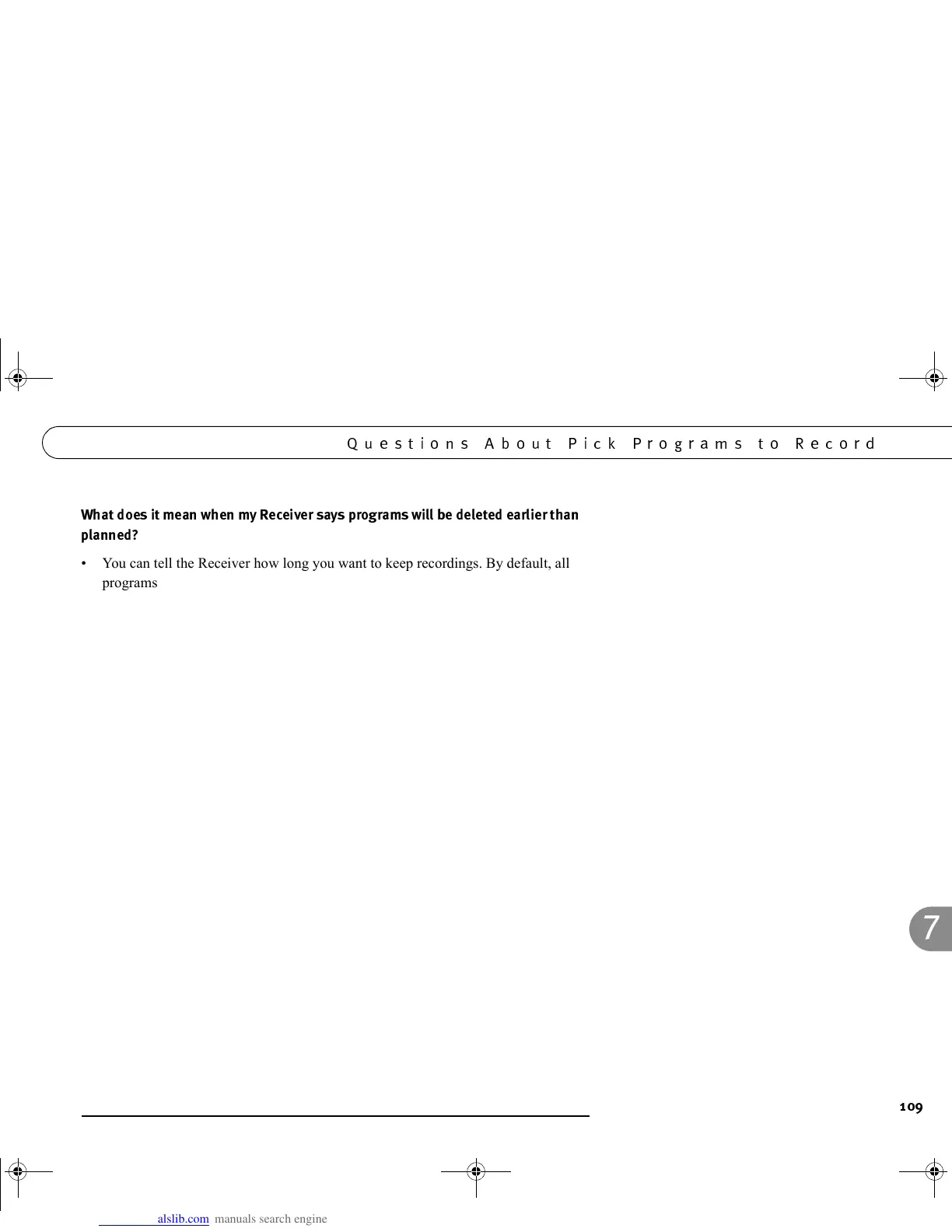 say on how long the Receiver keeps recorded programs. You can delete programs