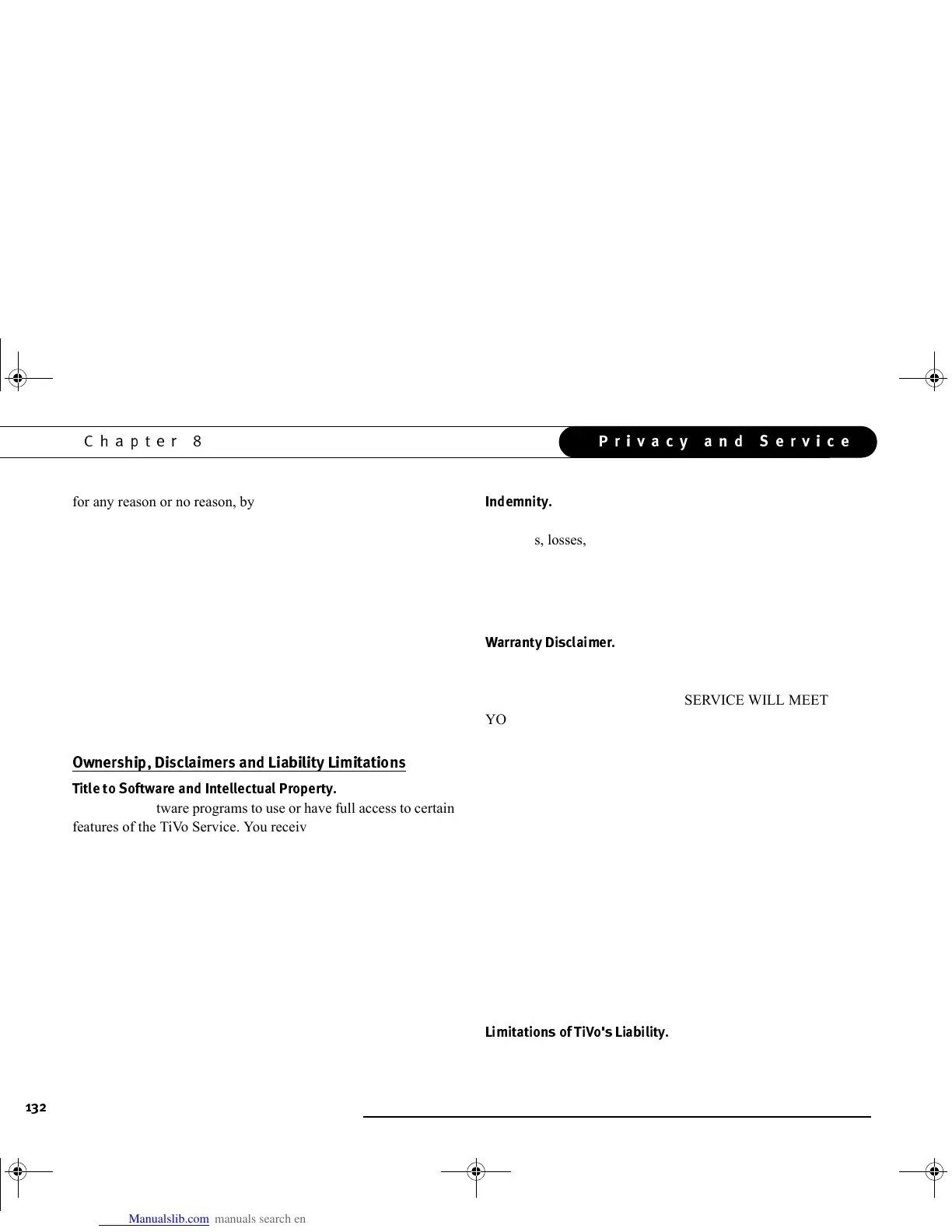 partially to claims against TiVo or the TiVo Service by third