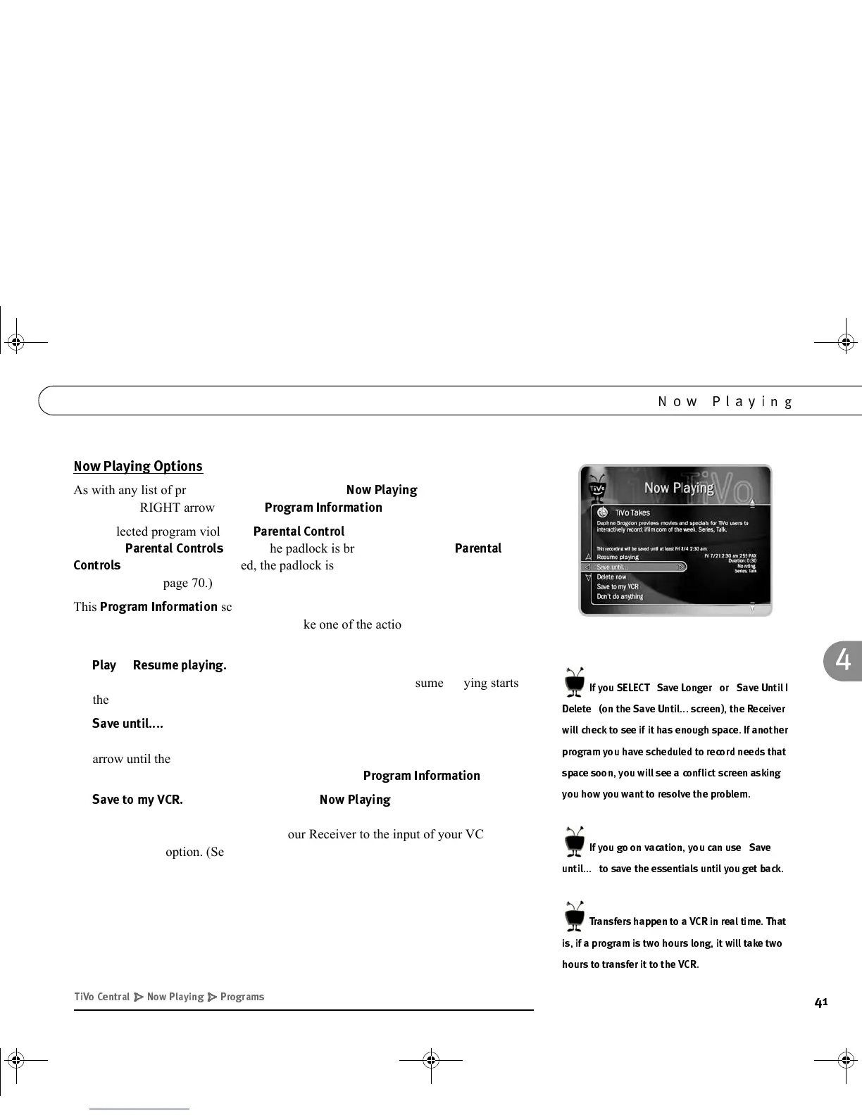 screen lets you start playing a program, delete a recorded