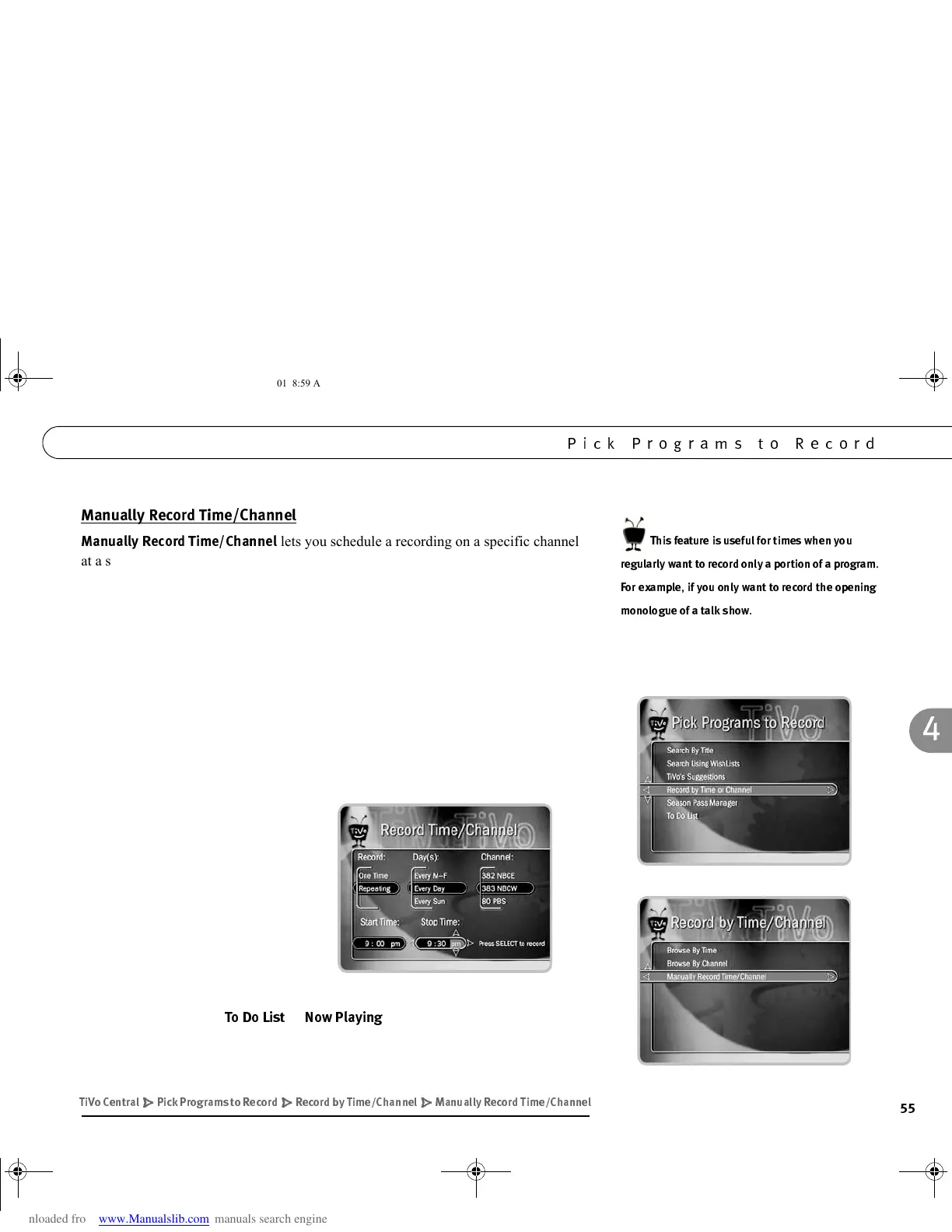 lets you schedule a recording on a specific channel