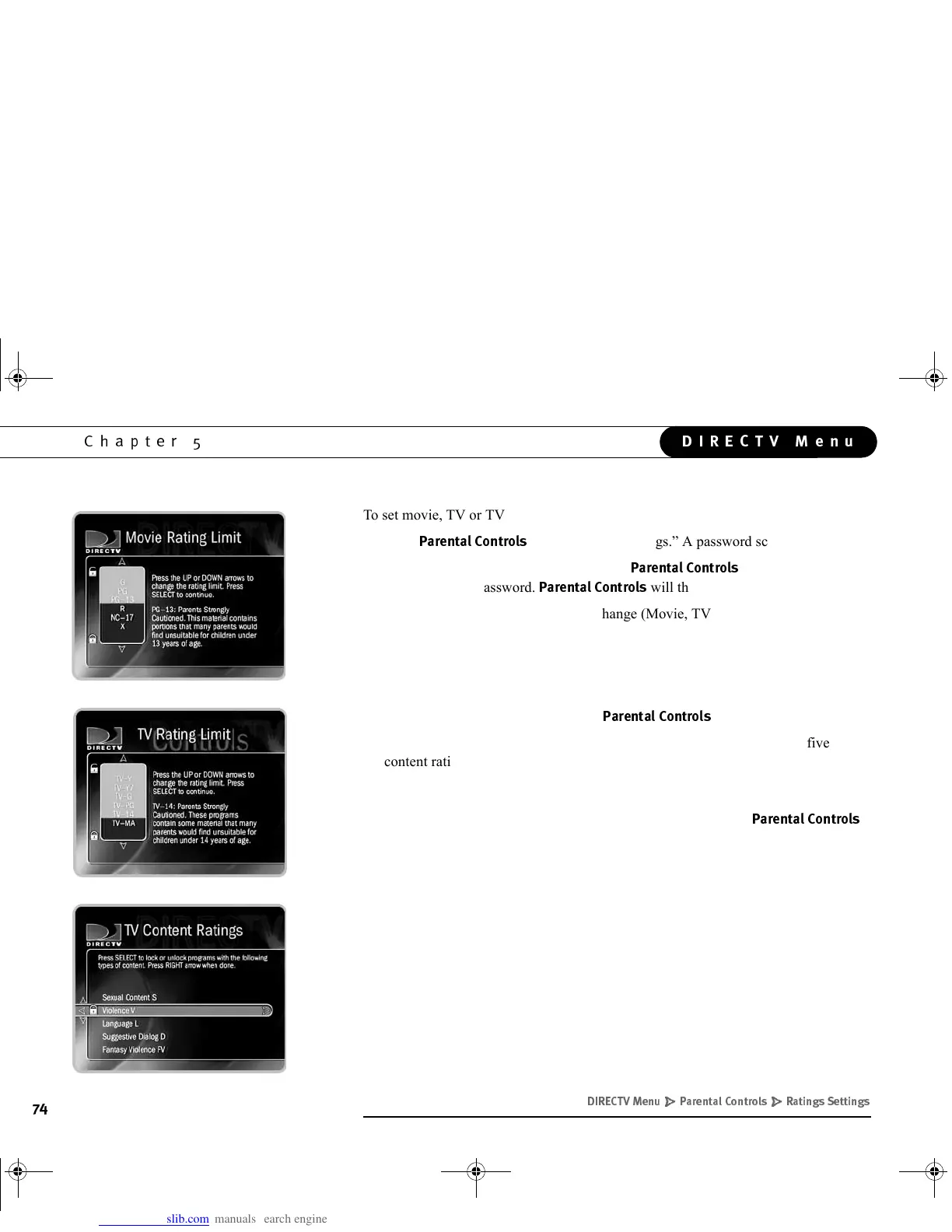 lock or unlock a content rating, highlight it and press SELECT. Your changes are