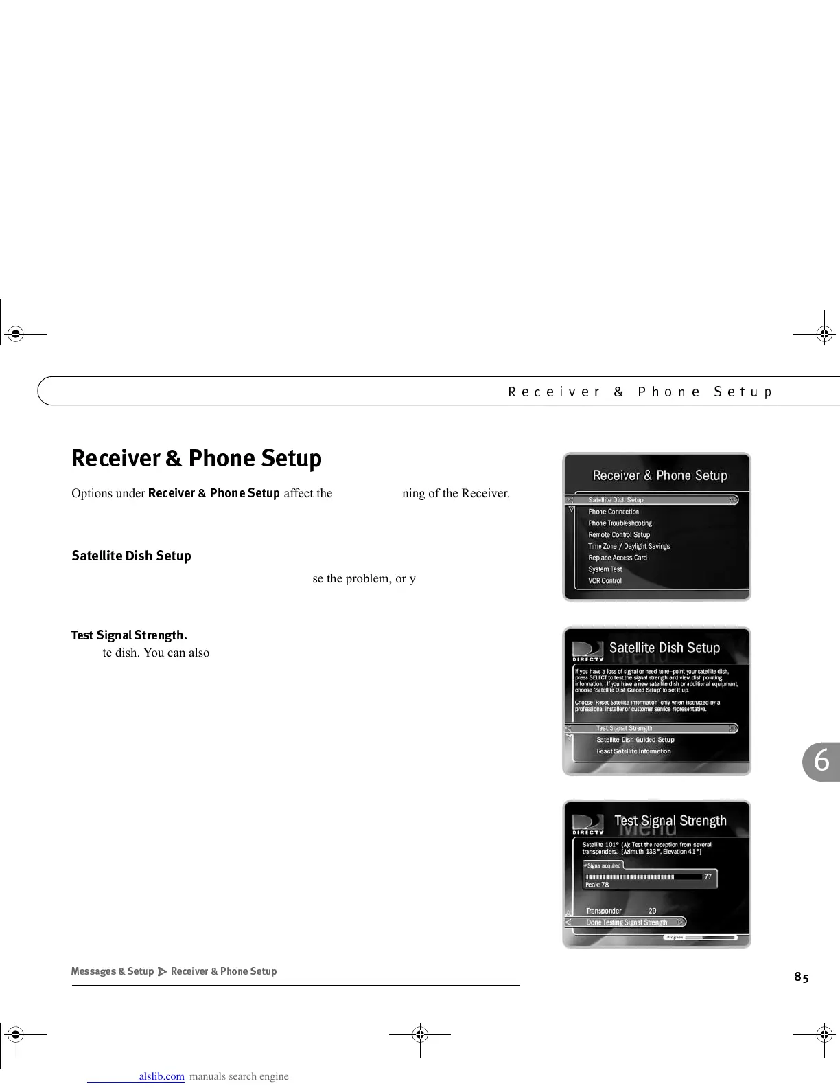 dish. The signal strength meter on this screen provides audio feedback—a tone that