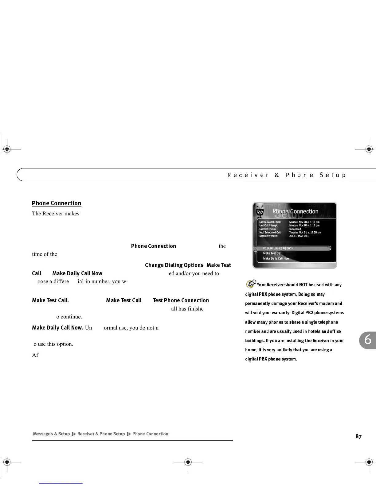 Guide. The Receiver makes a brief daily phone call to get updates to the TiVo Service,