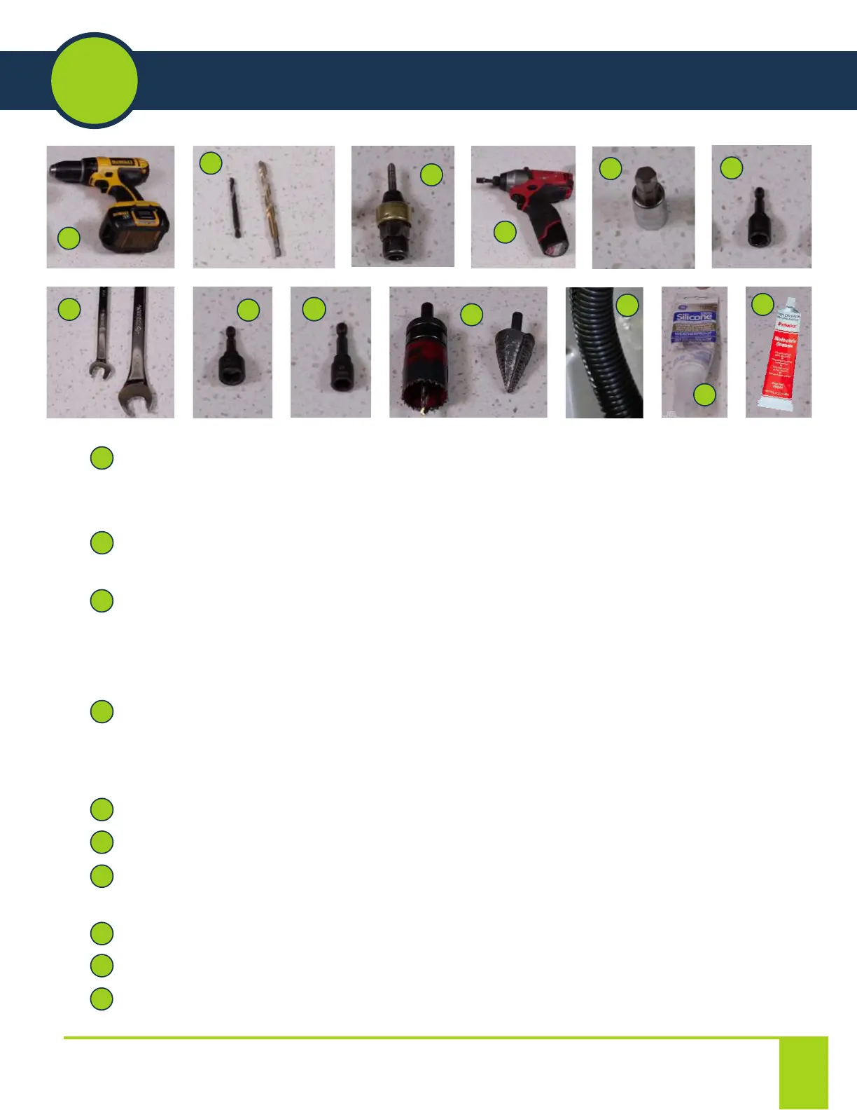 • 1-1/8” hole saw or step bit used for drilling hole in sleeper to run coaxial