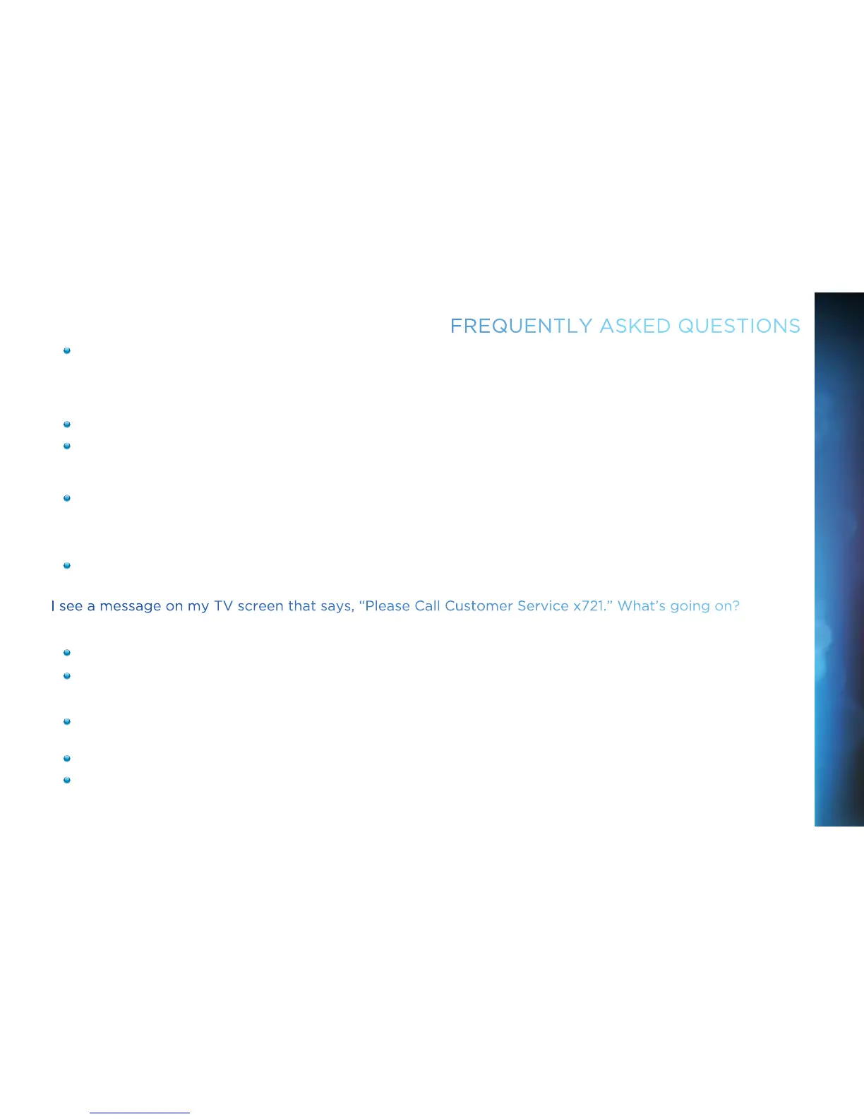 I see a message on my TV screen that says, “Please Call Customer Service x721.” What’s going on?