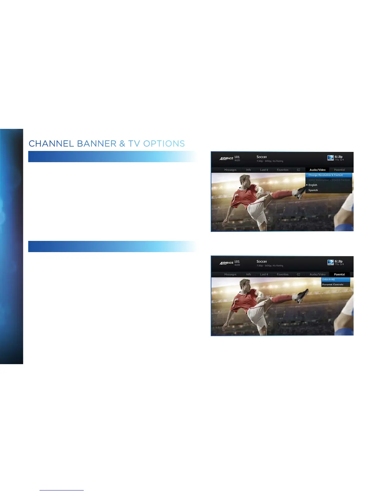 CHANNEL BANNER & TV OPTIONS