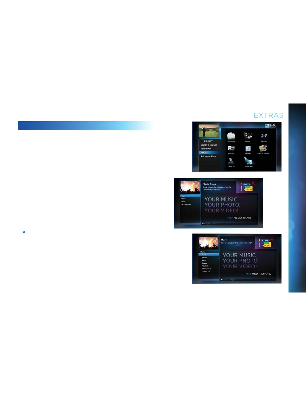 & Photos. The DIRECTV Media Share screen