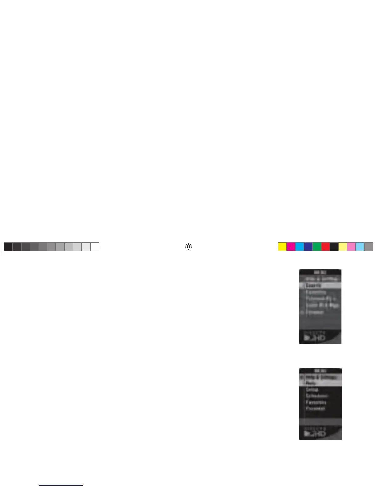 UP and DOWN arrows to highlight a desired menu item, then press SELECT to access that item. Some