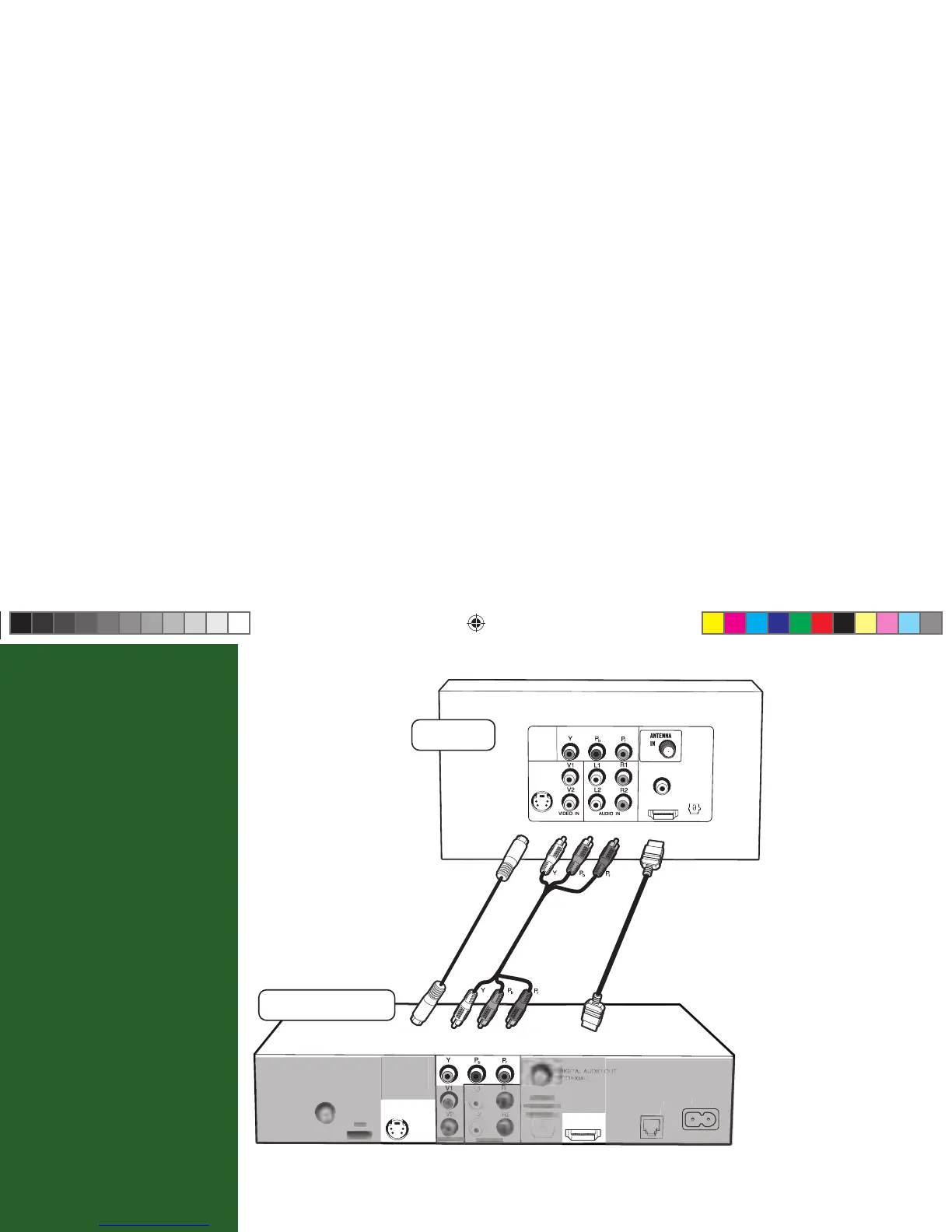 Audio/Video (RCA-type) cable. Observe the Red, Green, Blue color-coding.