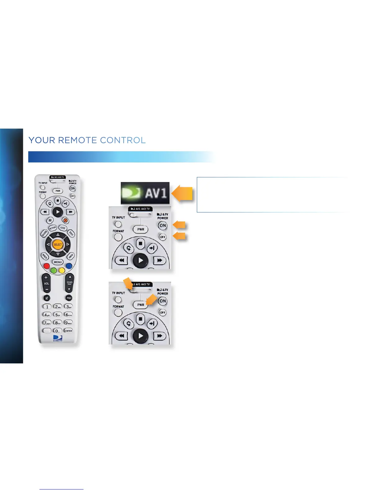 These two buttons turn your TV and DIRECTV