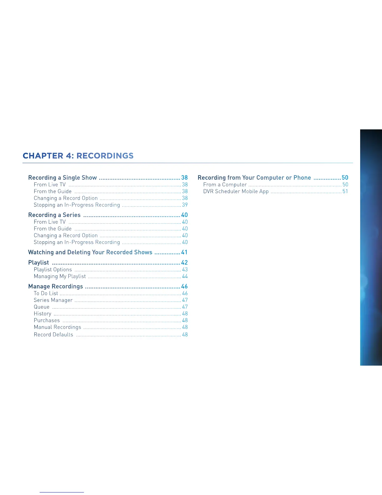 Watching and Deleting Your Recorded Shows ............... 41