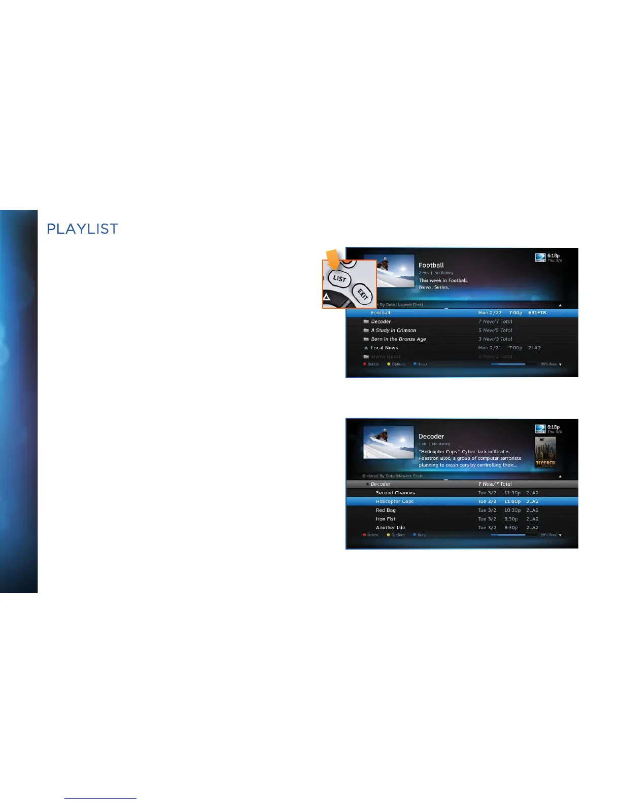 The Playlist screen displays all your recorded programs. To