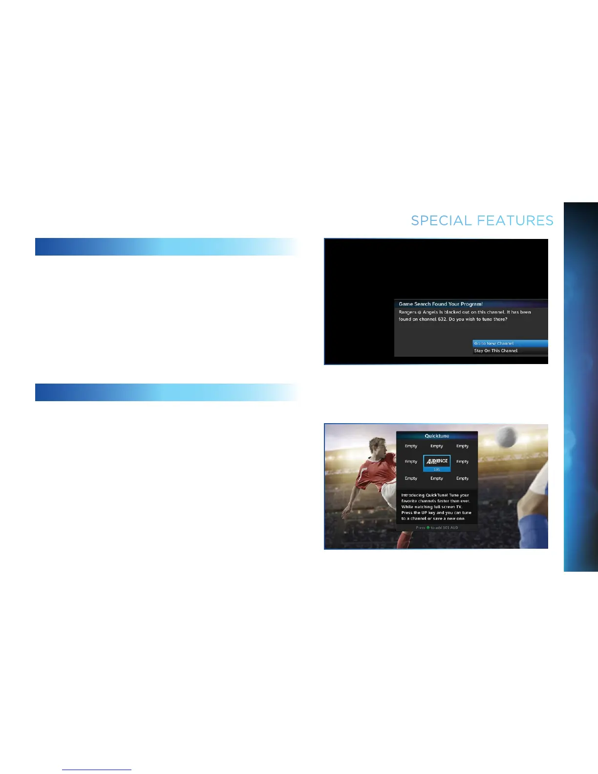 Use QuickTune to get to your 9 “must see” channels fast! While