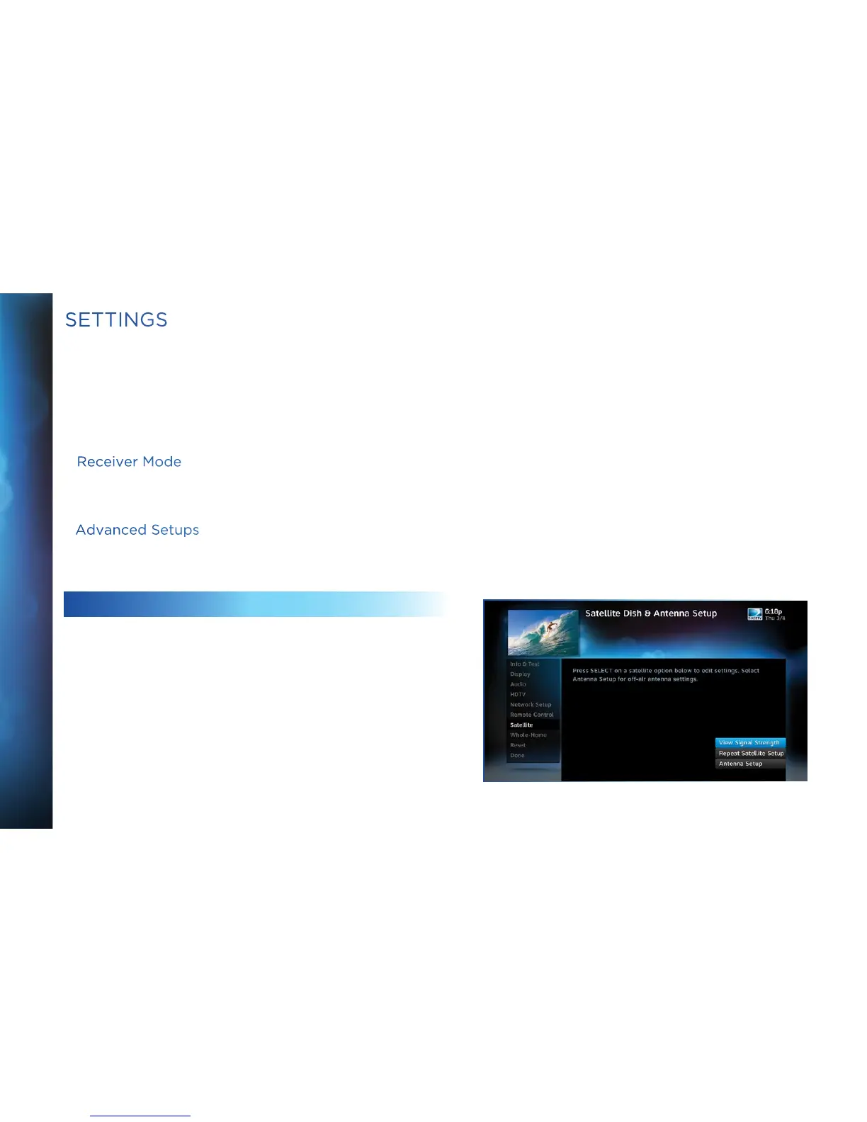 getting or to repeat the satellite setup procedure.
