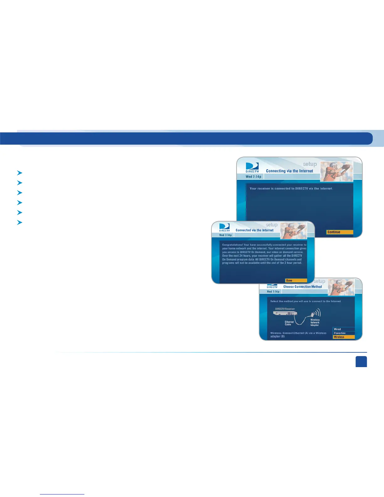Select Continue after successfully connecting to DIRECTV via the