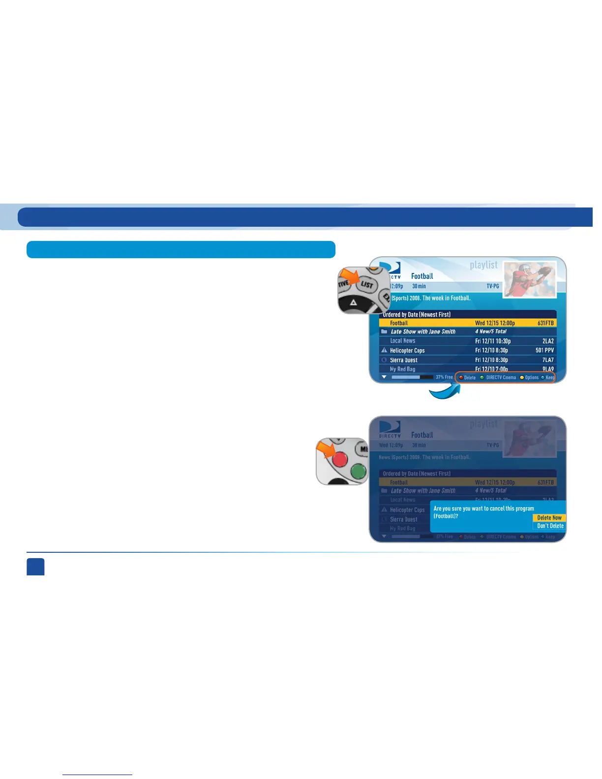 To see your list of recorded shows, press LIST on the remote. Alternatively,