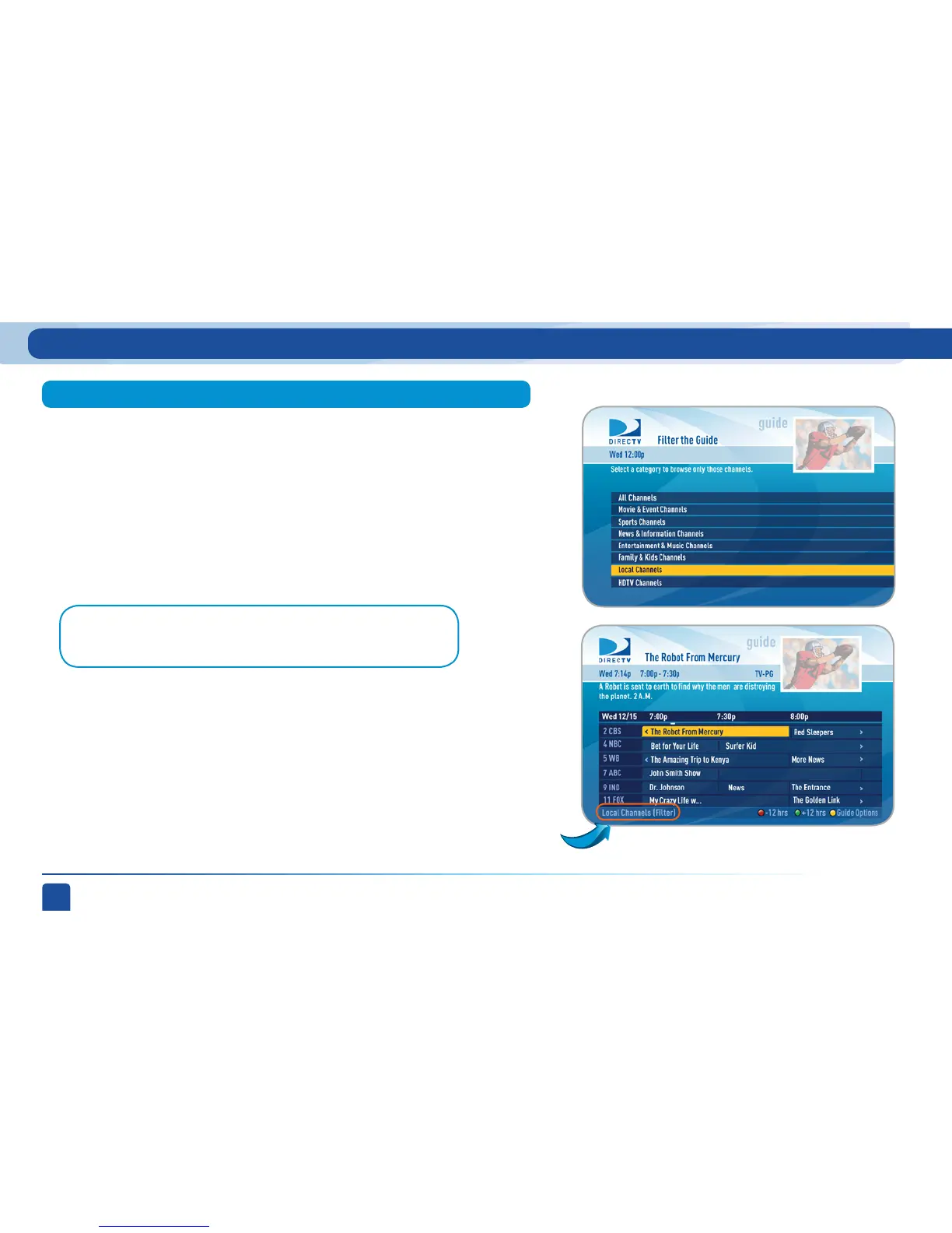 SELECT. The guide will now show only that the channels that match that