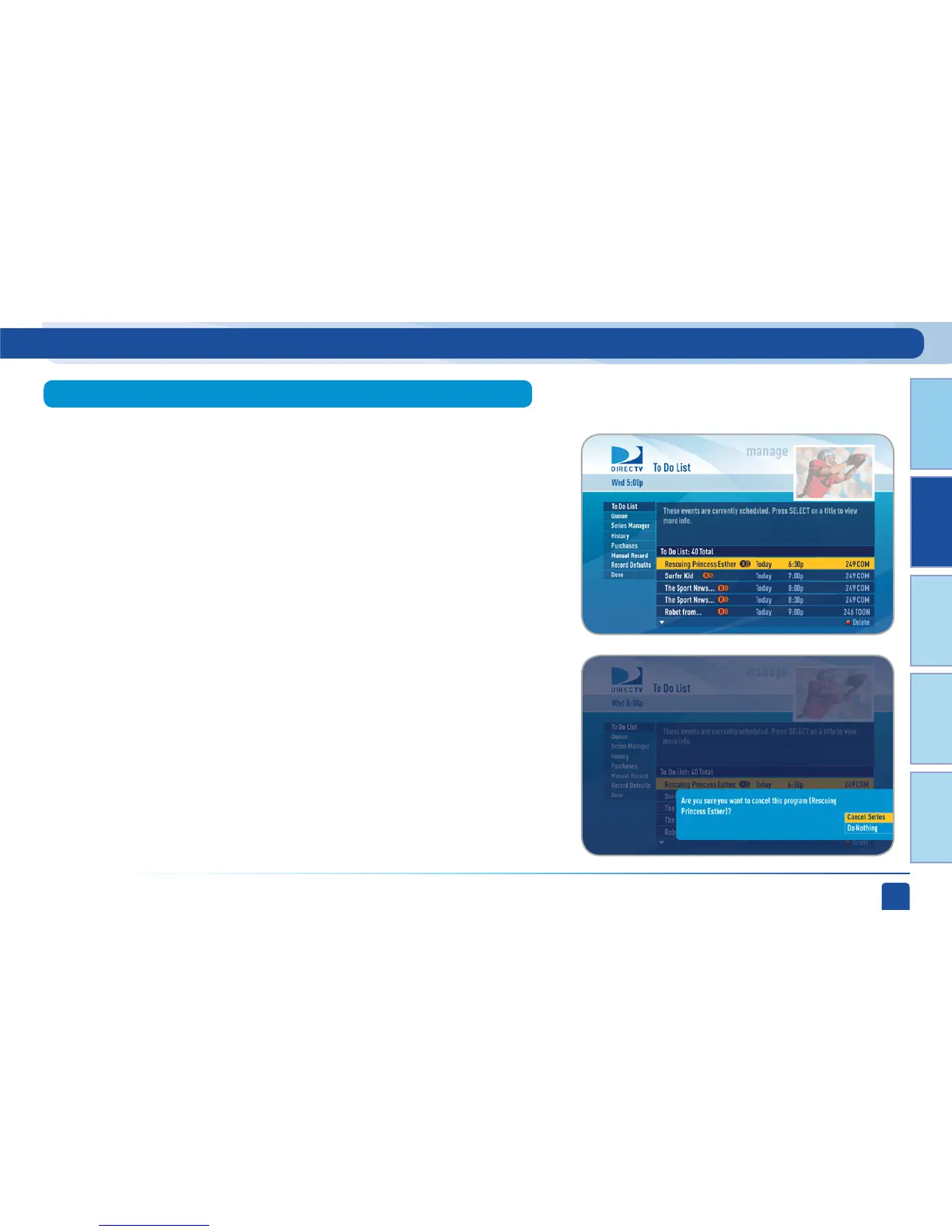 recordings you no longer want to record. The To Do list does not display