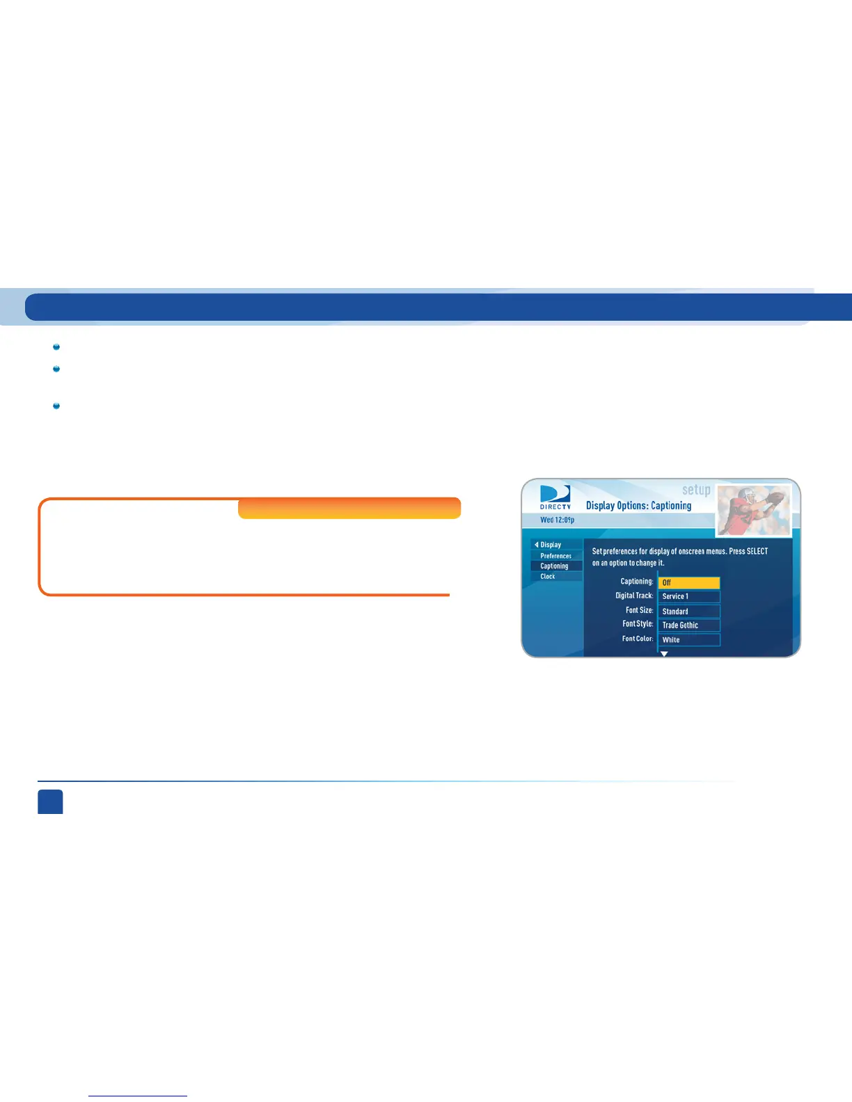 On High-Definition receivers, select “Captioning” to turn closed