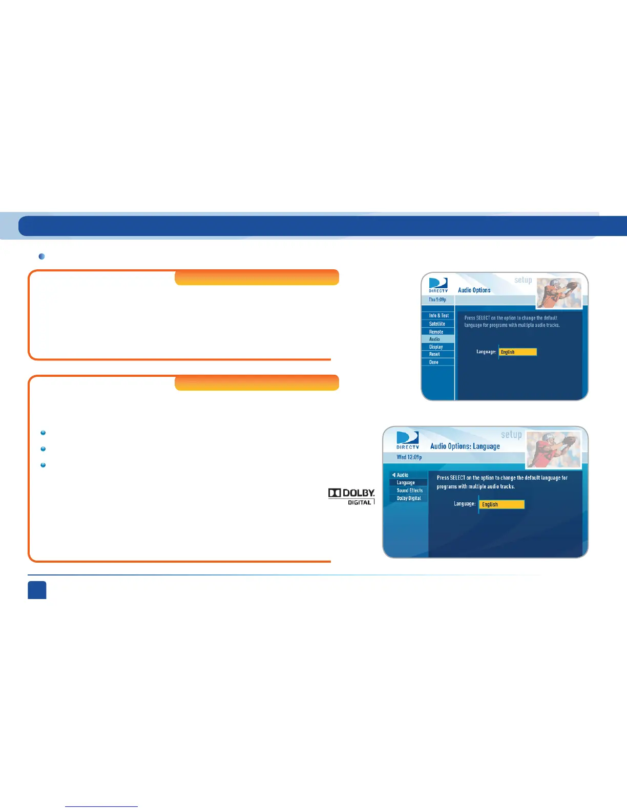 For High-Definition Receivers, select “audio”to make a persistent change