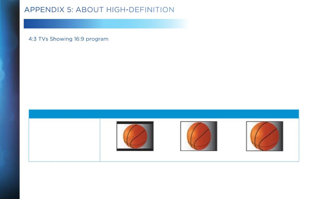 For a standard 4:3 TV showing a wide screen program, the program is too wide to fit on the screen. To alleviate this, choose: