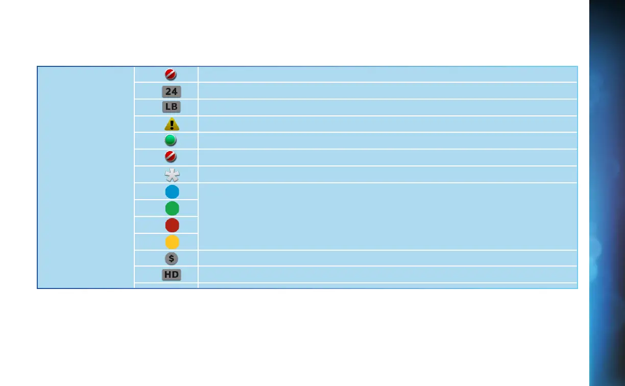 Indicates a rating level or channel that is blocked via Parental Controls.
