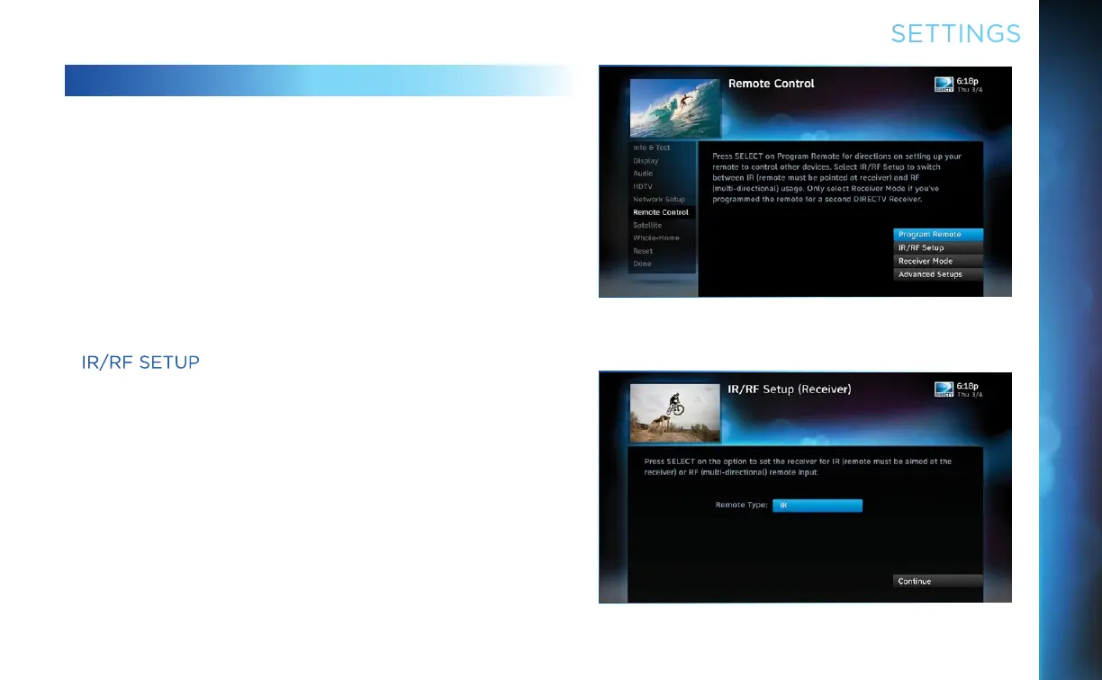 Control” and then “IR/RF Setup”. While IR transmission requires a