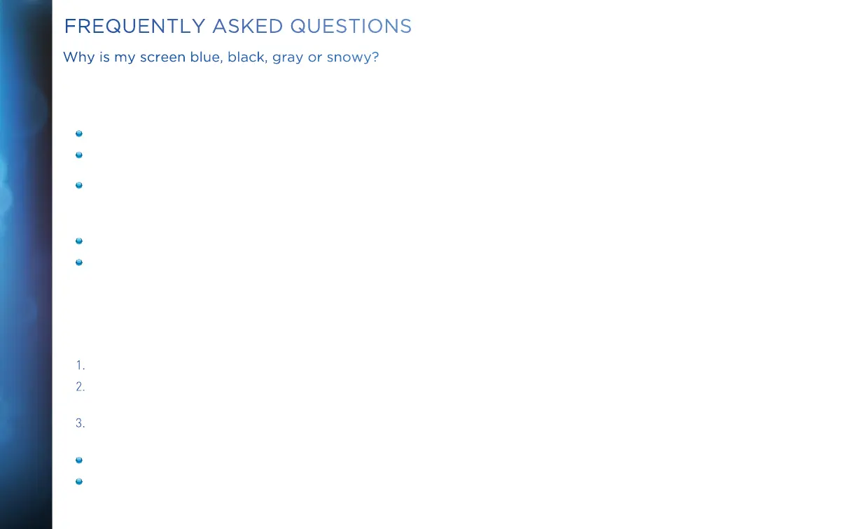 Why is my screen blue, black, gray or snowy?