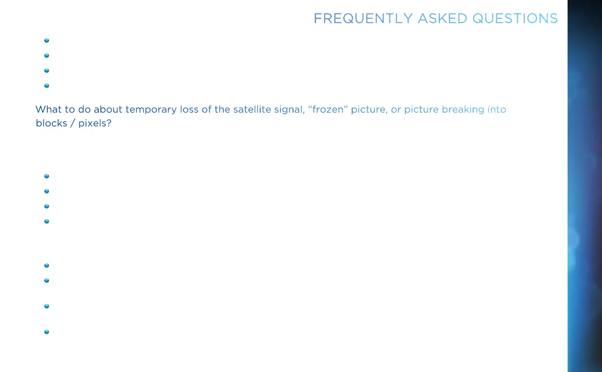 What to do about temporary loss of the satellite signal, “frozen” picture, or picture breaking into