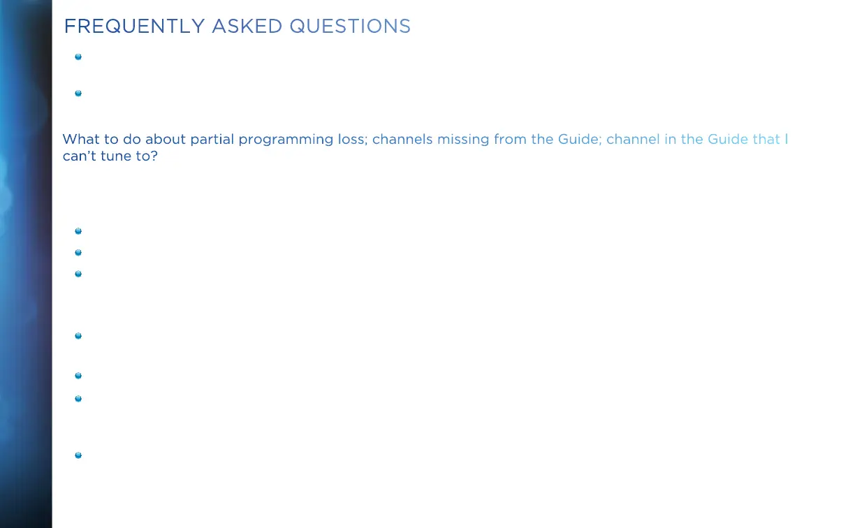 What to do about partial programming loss; channels missing from the Guide; channel in the Guide that I