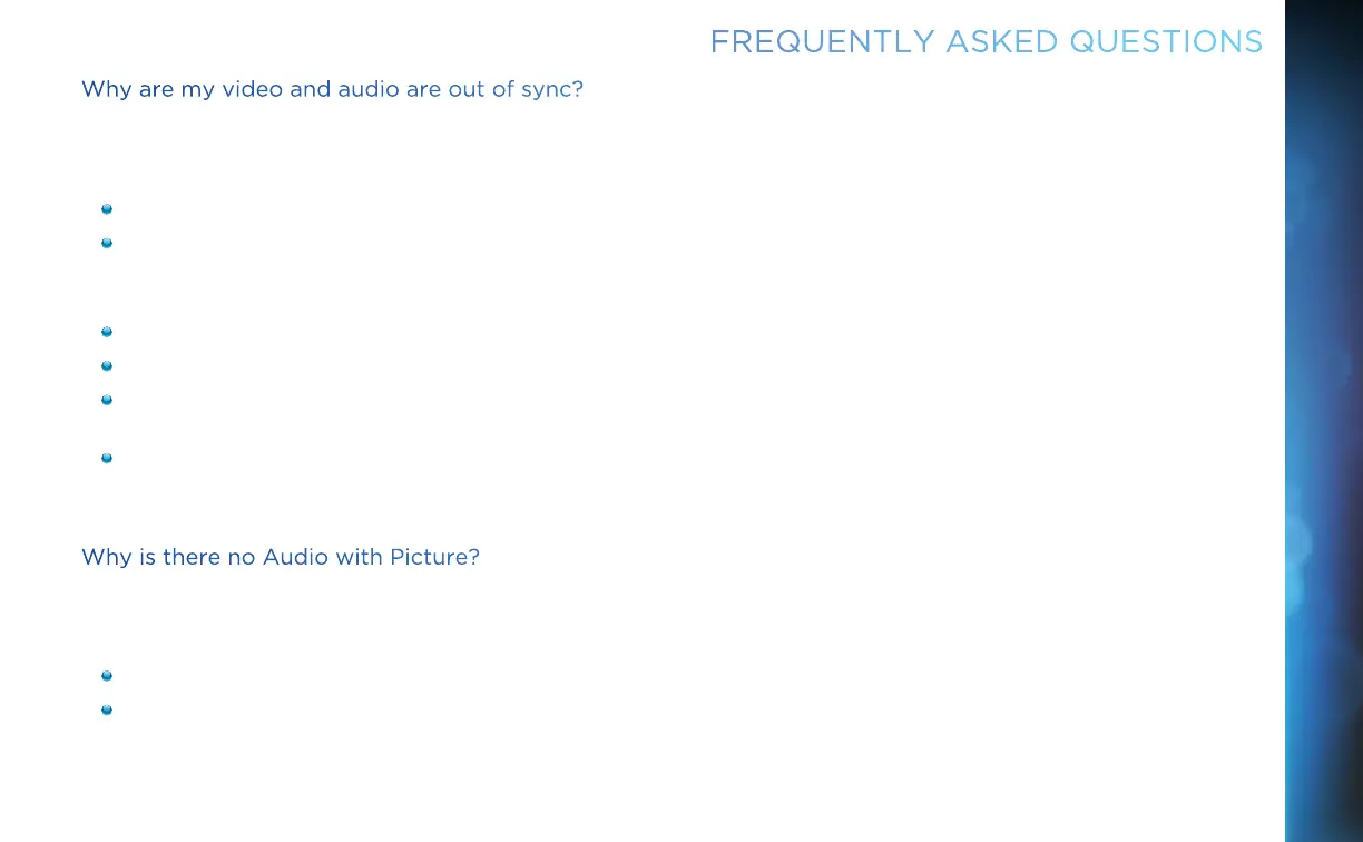 Your surround sound system may be out of sync, or may be set up incorrectly.