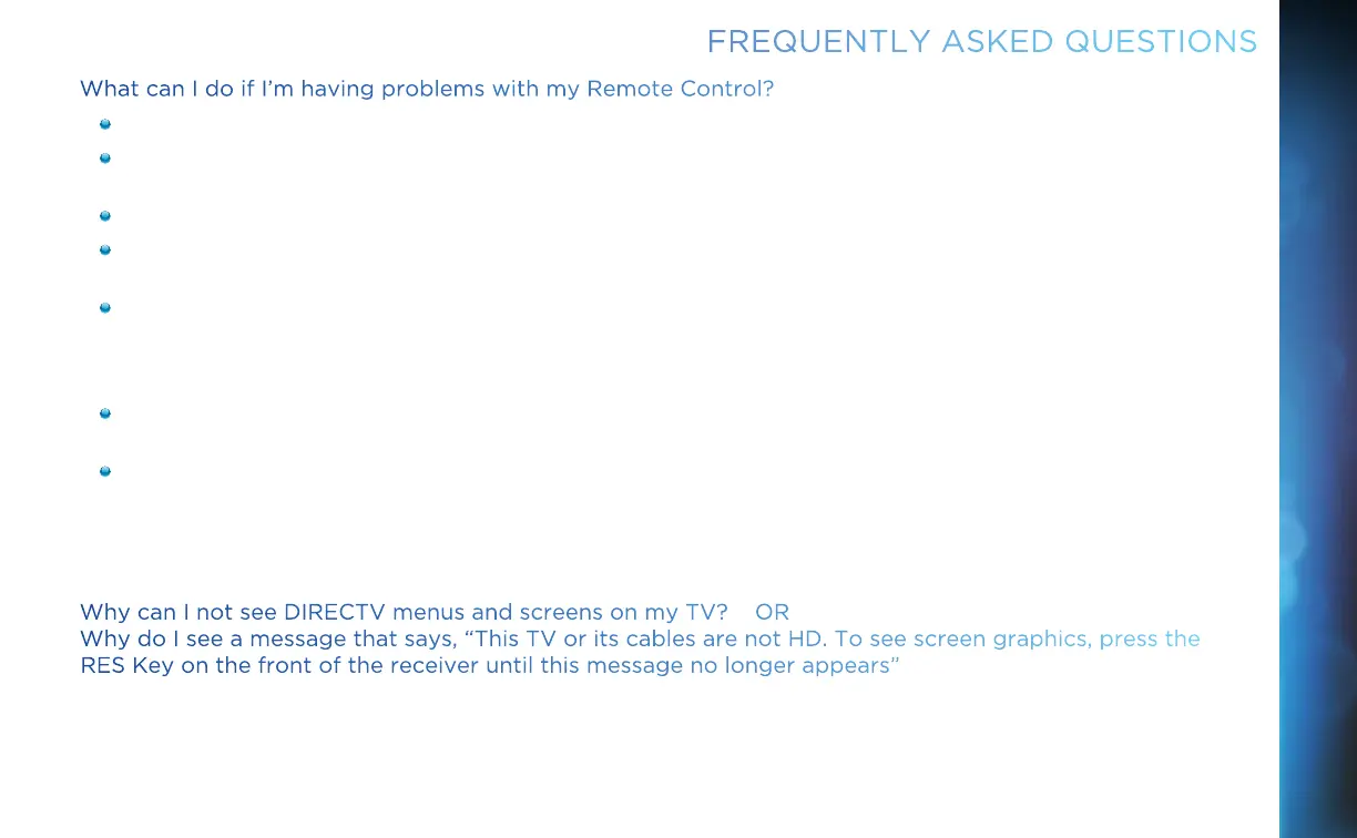 When the receiver resolution is set to 720p, 1080i, or 1080p, DIRECTV screens and menus (“user interface”) will not appear on