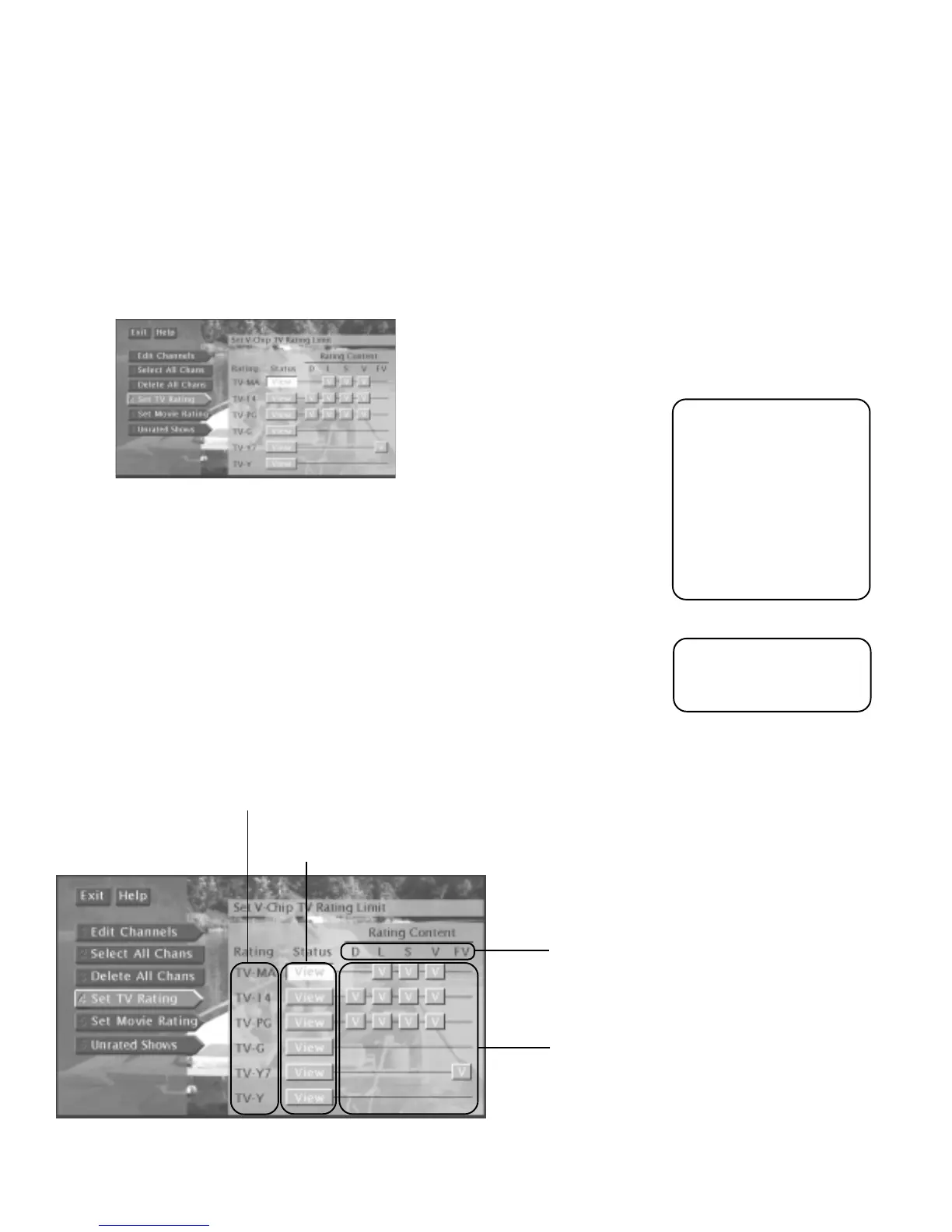 Selecting TV Rating allows you to set a limit for TV programs based on rating
