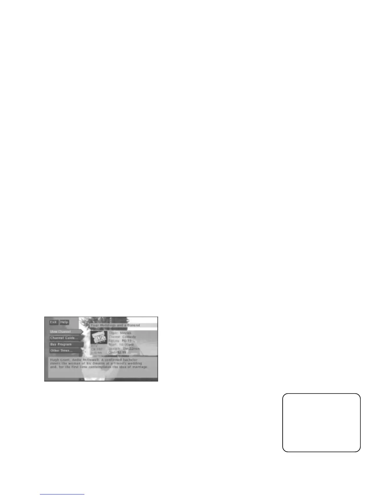 • Tune to a Pay Per View program’s channel. Program providers may