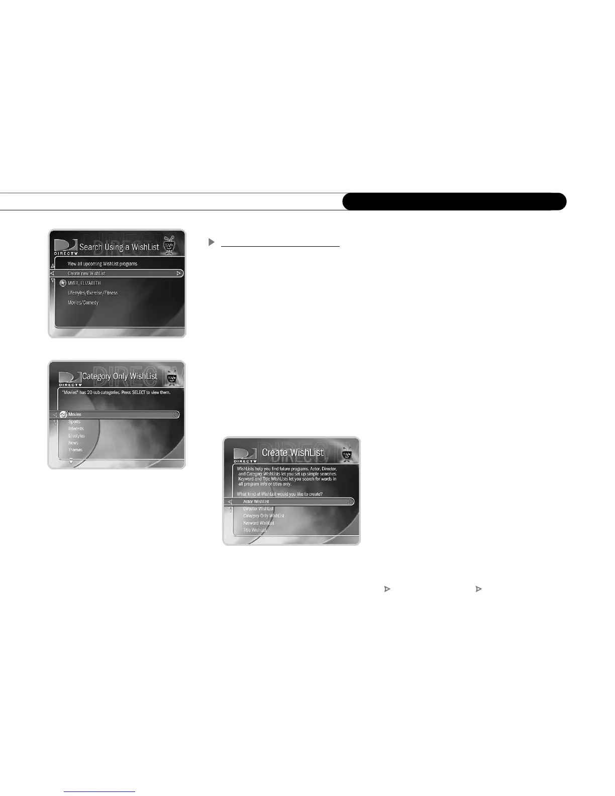 DIRECTV Central Pick Programs to Record Search Using a WishList