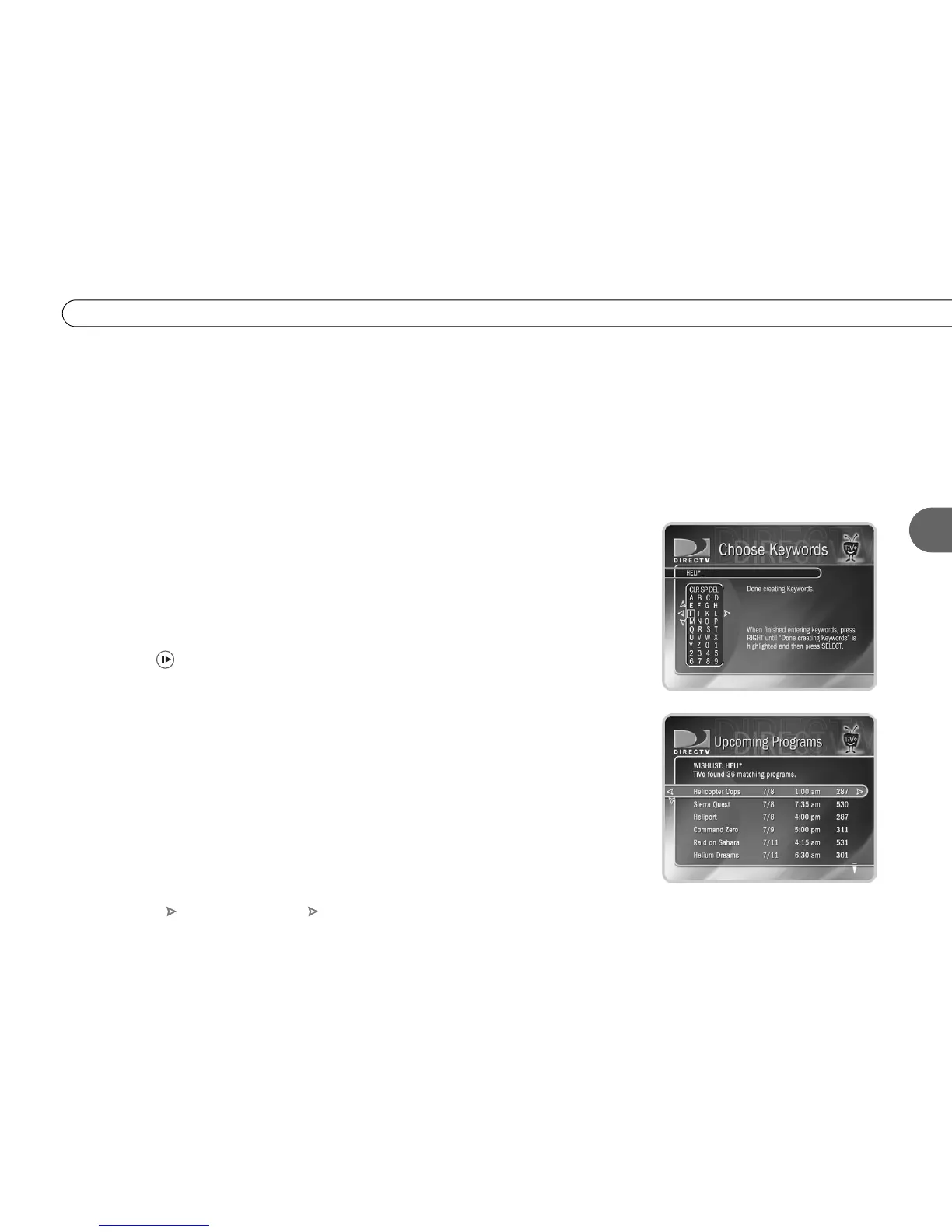 Spell your keyword(s) by using the arrow buttons to move around, then pressing SELECT
