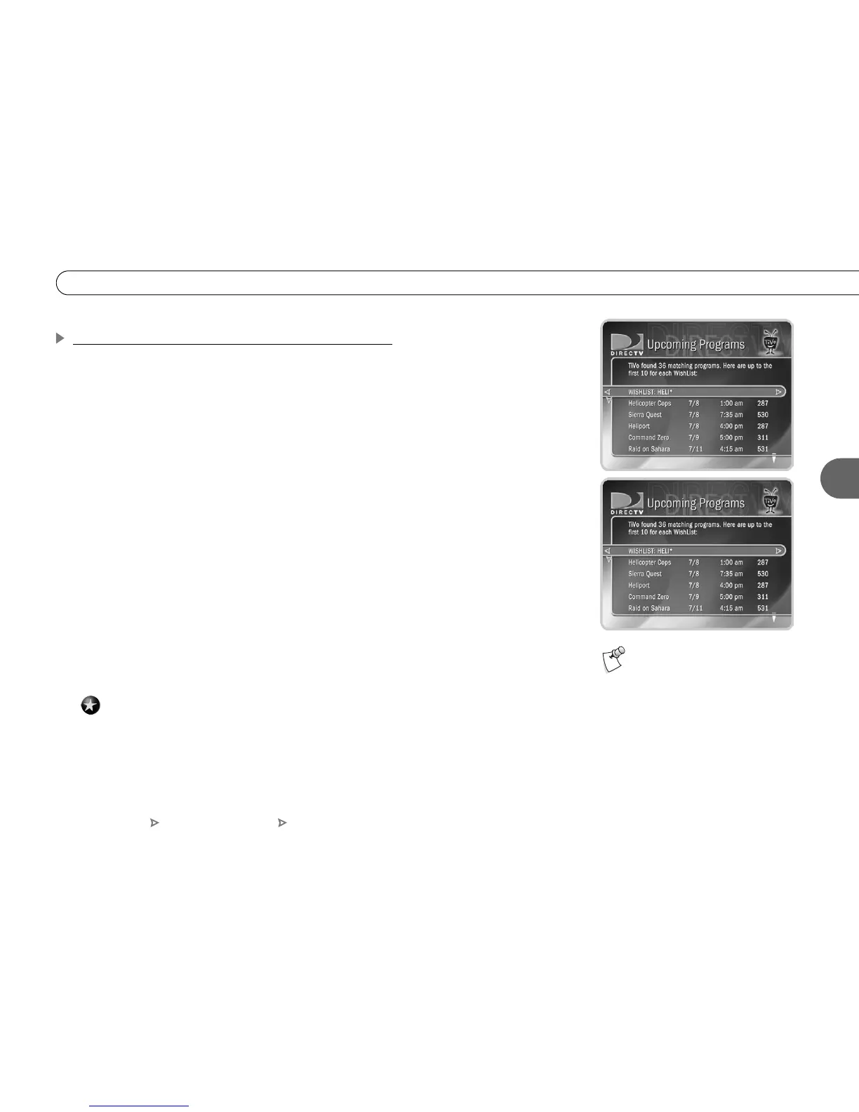 displays a list of up to 10 upcoming programs from each of your WishList searches—and