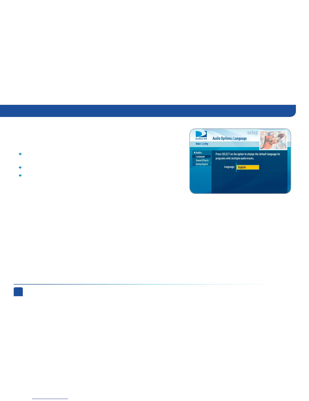 For Standard-Definition Receivers select “Audio” and then press the GREEN and