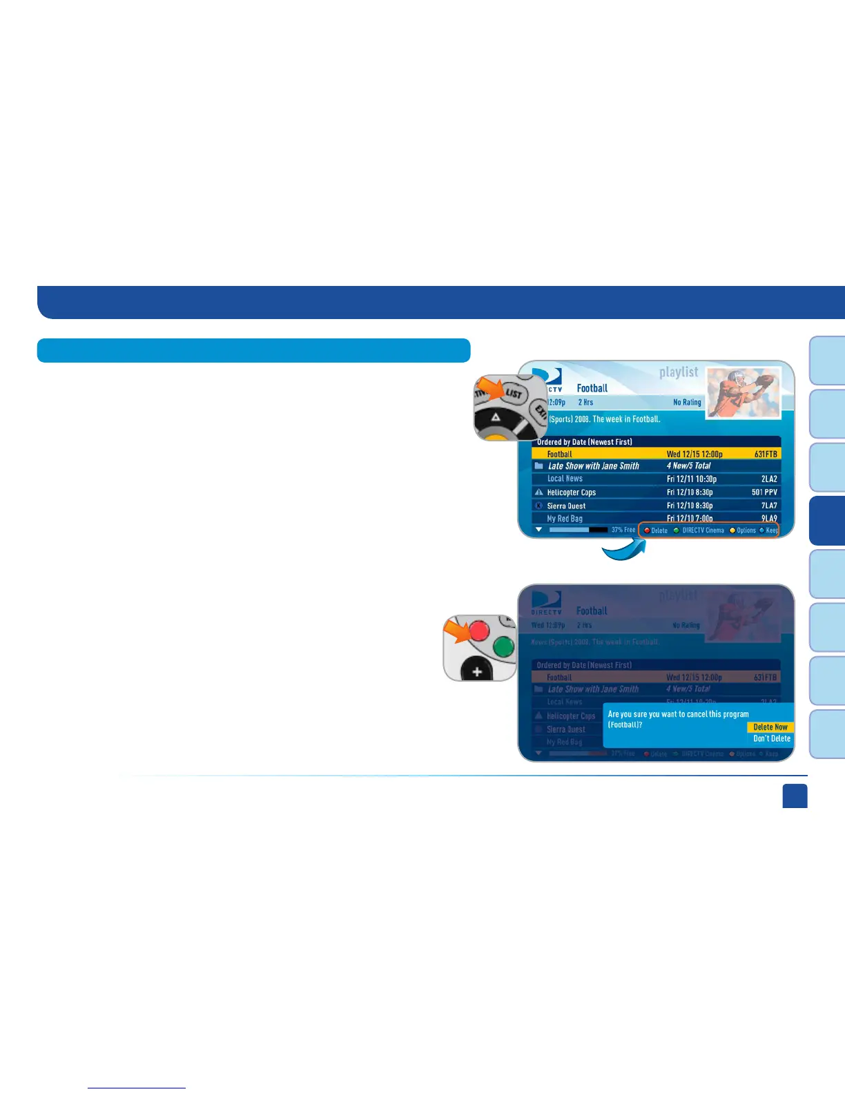 If you want to delete a show from your playlist, use the arrow keys to
