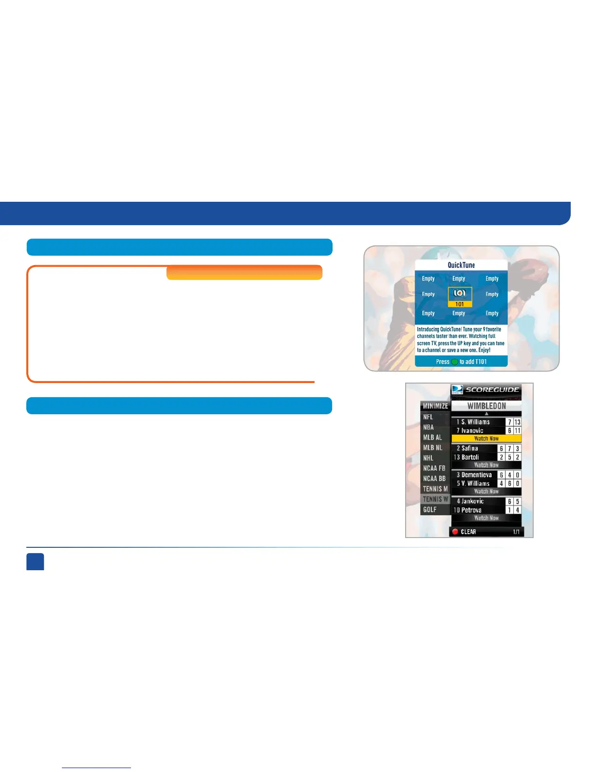 Use QuickTune to get to your nine “must see” channels fast! While