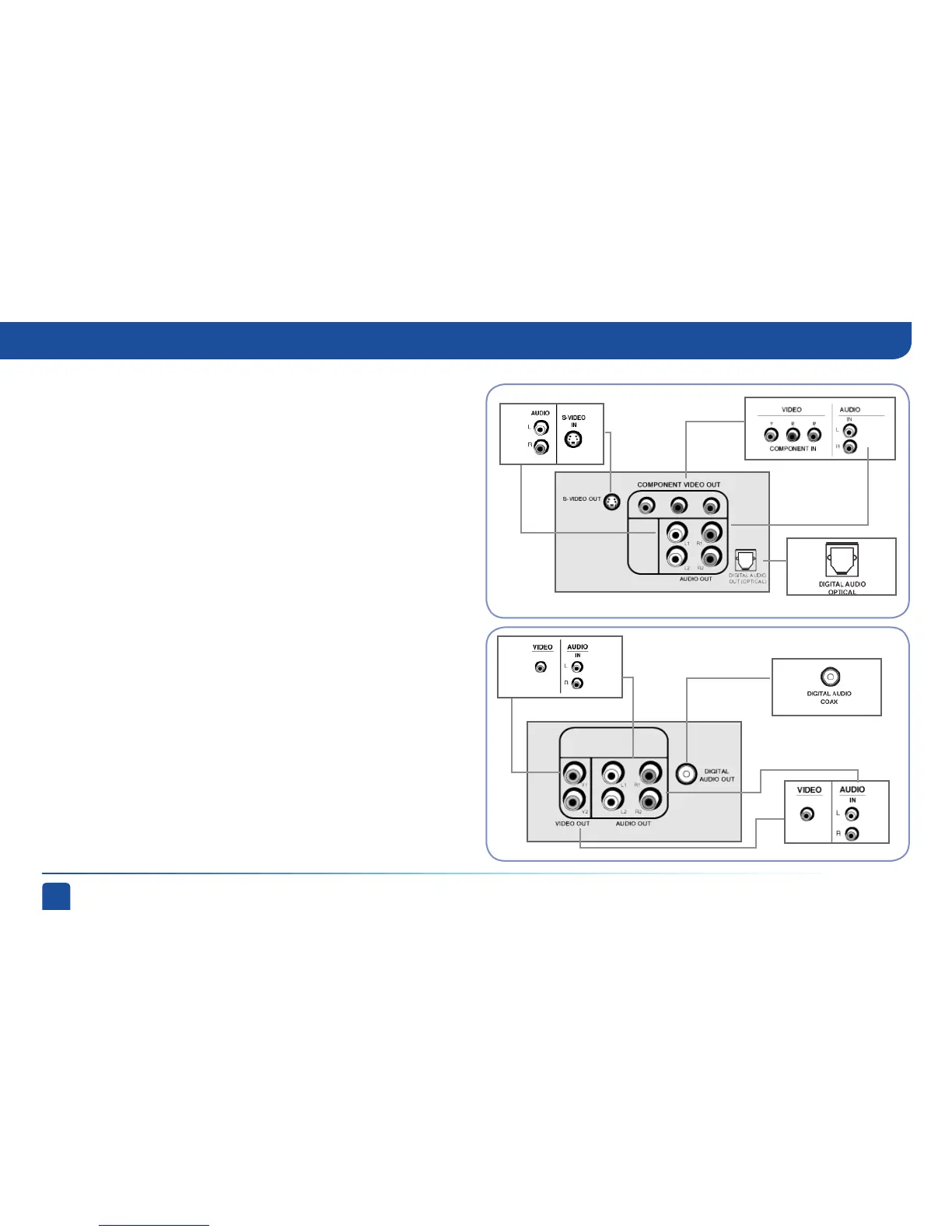 This example also shows using a VCR or DVD burner with RCA audio