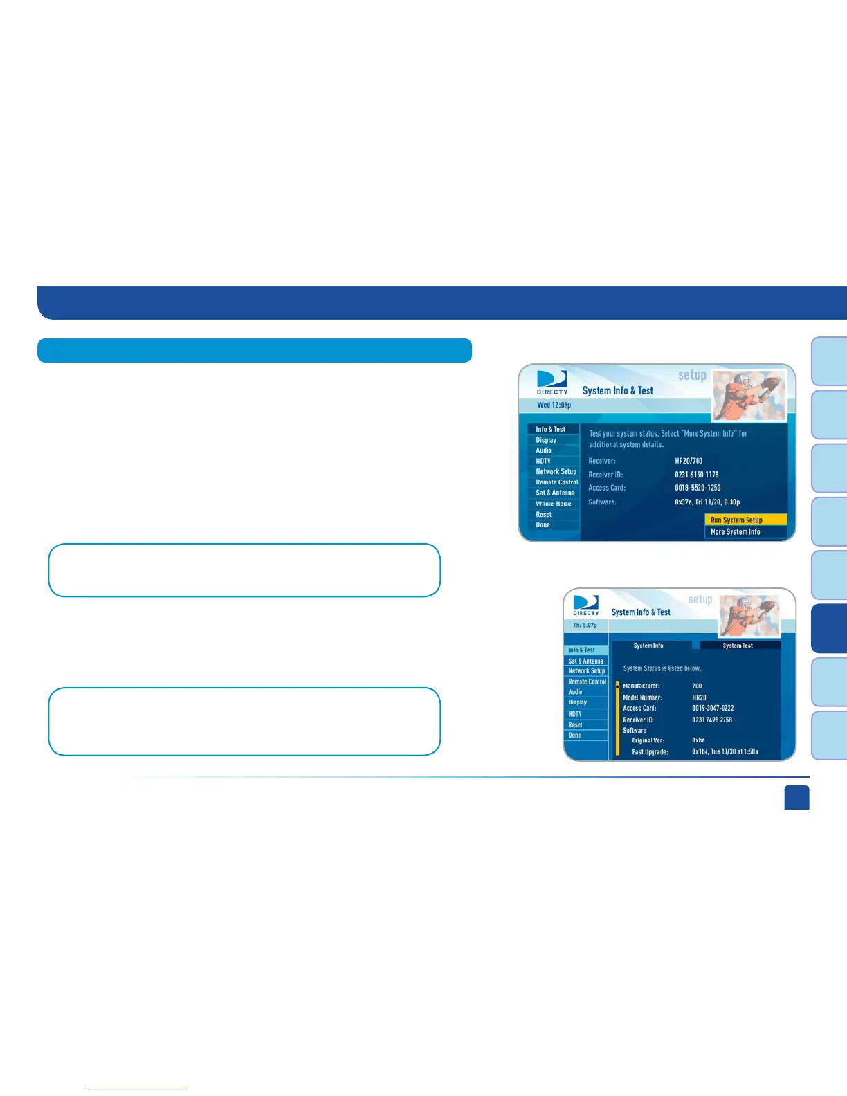 buttons on your remote to move between the System Info and System Test screens.
