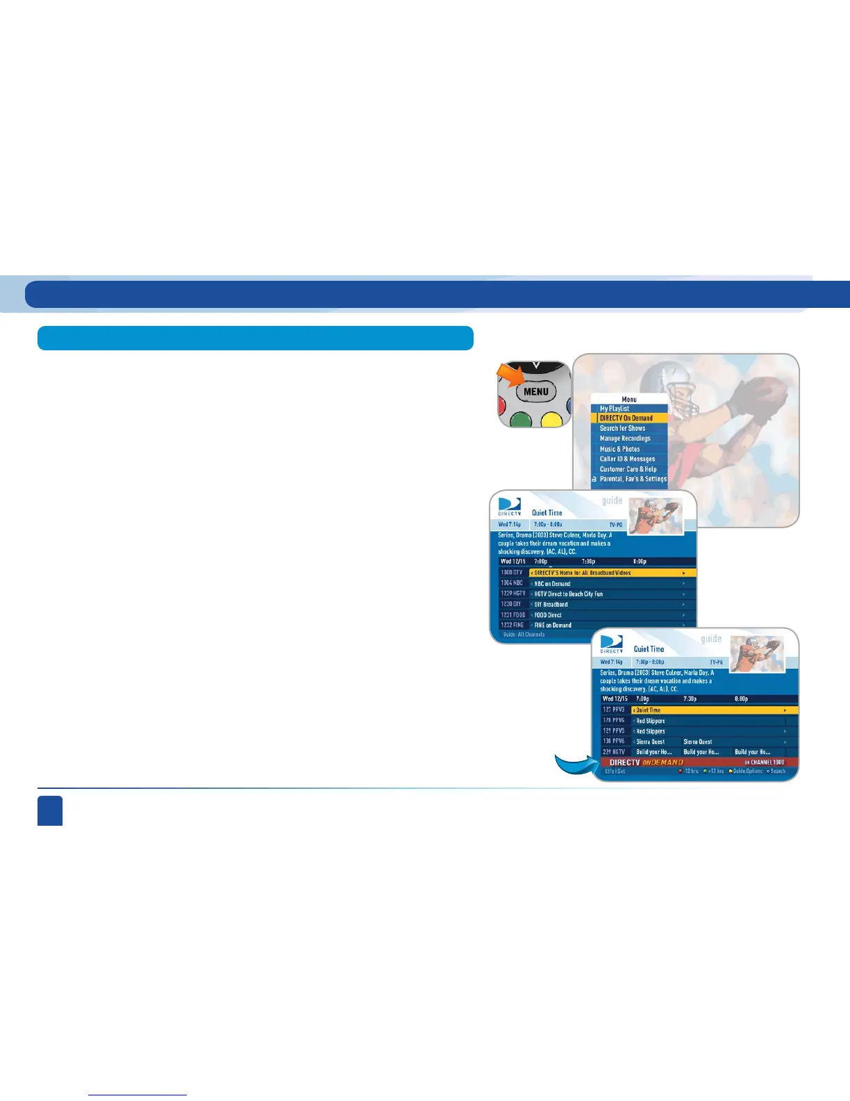 1. Press MENU, select DIRECTV on Demand, or