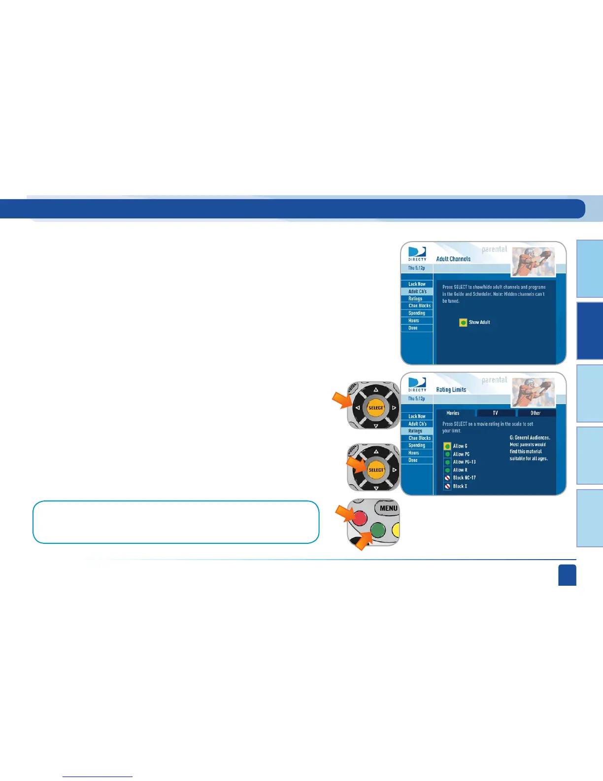 Pressing SELECT toggles between Show Adult and Hide Adult.