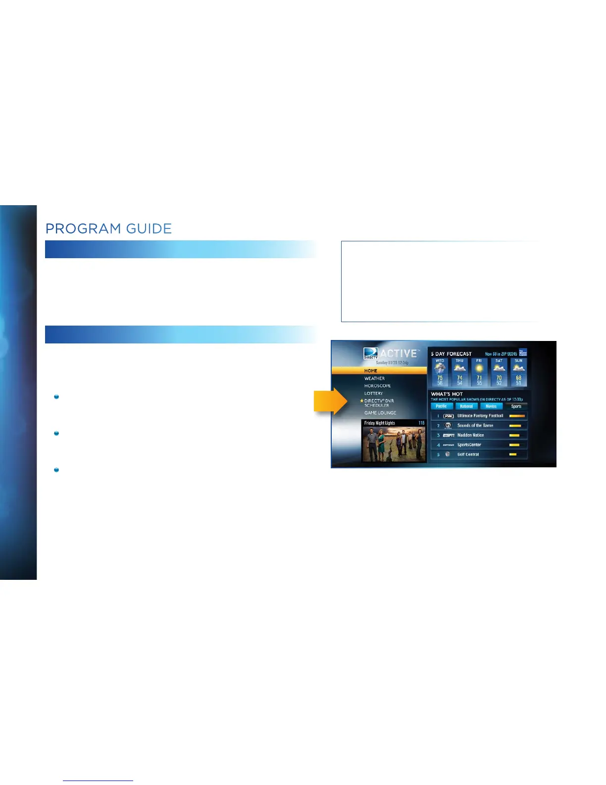 the program guide. Move the yellow highlight box using