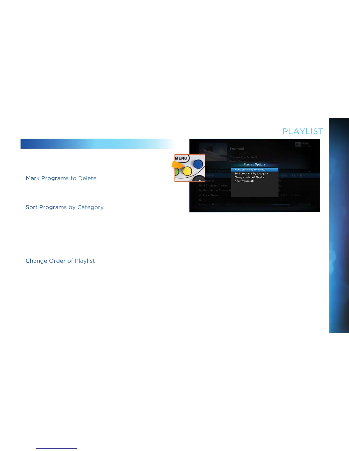 From the Playlist screen, press the YELLOW button to display