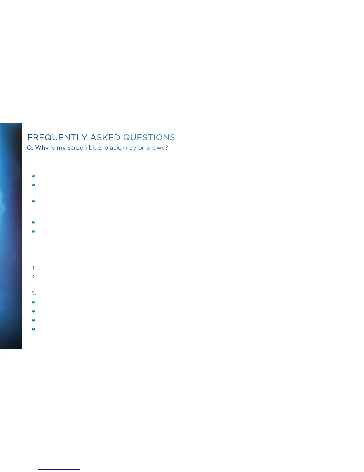 If you see a snowy screen and are using a coax connection to connect to the TV, make sure your TV is on channel 3 or 4.