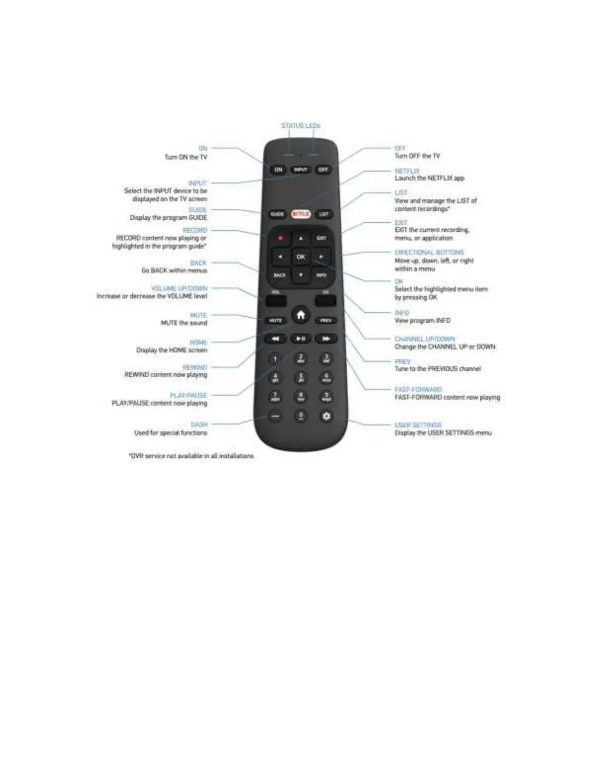 The diagram below describes each key on the remote.